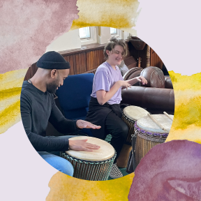 Hands-on percussion and movement experiences. Call-and-response and rhythm building